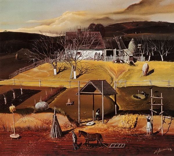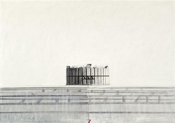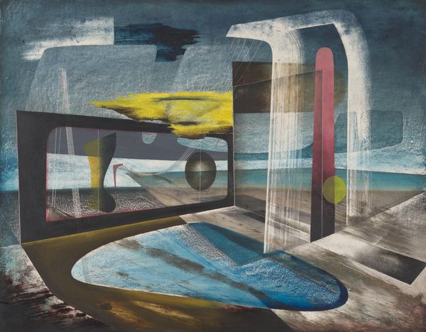 Editor: So this is Konstantin Korobov's oil painting, titled "Island." It's oddly captivating. I can't quite place its emotional tone – a bit melancholic, perhaps? There's something about this stark, isolated apartment complex… How do you interpret this work? Curator: The image certainly speaks to a collective memory of urban spaces. Notice the geometric forms and rigid lines, representative of rational thought and progress. Yet, the "island" setting suggests isolation, a detachment from a larger context. The architectural elements serve as a potent symbol of the Soviet-era utopian ambitions, promises of collective well-being now stranded in an unsettling landscape. What emotions arise when you consider this cultural memory embedded within the picture? Editor: The isolation is strong – this idea of once-grand ambitions now alone in still waters. It makes me think about changing ideas of progress. And why call it "Island" instead of just cityscape or building? Curator: Precisely. The term “island” adds a psychological layer. Islands represent not just physical separation, but a mental space, too. This island then becomes a container for memories, cultural anxieties. Notice the colour palette? Editor: Yes, subdued, grey, and slightly muted, except the vivid, almost cartoonish colours in the water. Curator: The colour choices could suggest repressed emotion and latent anxieties about what once was or might have been. How do those submerged bright tones impact you as the viewer? Editor: That’s an interesting point. The water almost undermines the building's severity; that contrast emphasizes its stagnation, lost promise, making it more impactful. Curator: Exactly, and that tension between realism and surrealism generates a powerful visual experience. Understanding those artistic symbols and cultural cues gives us more profound ways of analyzing images.