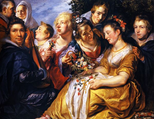Giovanni Battista Tiepolo's "Scene from Ancient History" presents us with a dramatic interplay of color and form set within an oval frame. The vibrant reds and blues of the soldier's attire sharply contrast with the pale, flowing drapery of the reclining figure, immediately capturing our attention. Tiepolo masterfully uses light to guide the viewer's eye, illuminating the central figures while casting the architectural backdrop into a softer focus. This technique not only enhances the drama of the scene but also emphasizes the emotional vulnerability of the figures. The arrangement of the figures and the sharp diagonal created by the soldier's sword creates a visual tension, destabilizing the traditional static compositions often seen in historical paintings. This dynamic composition, along with Tiepolo’s bold color choices, challenges the viewer to reconsider the values and interpretations of historical narratives.