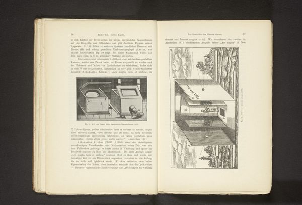 Editor: This is "Gezicht op de kamer van Vader Libert in Leuven," which translates to "View of Father Libert's Room in Leuven." It’s attributed to Victor van Tricht and thought to be from before 1896. It appears to be a black and white print, a photograph of an interior. It feels oddly intimate and a bit austere to me. What stands out for you? Curator: What strikes me is the image's engagement with perspective, wouldn't you agree? The composition directs our gaze upwards. What do we typically associate with looking up? Consider ladders. They appear as transitional objects, mediating between earth and the heavens. Is the window below framing a space beyond? Are these perhaps metaphors for ascension, earthly struggle, and divine encounter? Editor: I hadn’t thought about the window as a metaphor, I was too focused on the ladder! Do you think that the other framed picture holds meaning as well, or is it merely decoration? Curator: Decoration rarely exists without intention. Framing an image within an image acts as a symbolic echo. Do you suppose it replicates a story, amplifies a memory, or perhaps hints at something else unseen yet profoundly felt? The eye moves, drawn between these nested spaces. The interplay reveals the depths of what this room, and this man, represent. Editor: This has truly expanded my understanding! Now, it’s not just an austere interior, but a portrait of aspiration and memory. Thank you. Curator: Indeed. Images invite not just our sight but our introspection. The room then becomes a landscape of the soul.