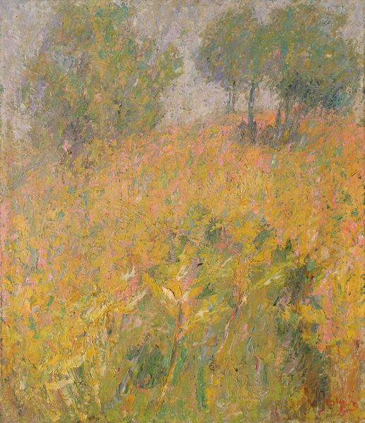 Ivan Grohar's painting, made with oil on canvas, offers a glimpse into the Slovenian landscape through the lens of Impressionism. Look closely at the brushstrokes and the texture of the paint itself. Grohar's application is thick and deliberate, building up layers of color that capture the light filtering through the trees. The materiality of oil paint – its viscosity and the way it can be manipulated – is central to the artwork's overall appearance. Each dab and stroke contributes to a sense of movement and vitality, as if the scene is caught in a fleeting moment. Consider the labor involved in creating such a work. From the preparation of the canvas to the mixing of colors, Grohar engaged in a physical process that demanded both skill and patience. Through this process, Grohar elevates the depiction of rural life. By focusing on the materials and making of the artwork, we gain a deeper appreciation for the artistry and the world it represents.