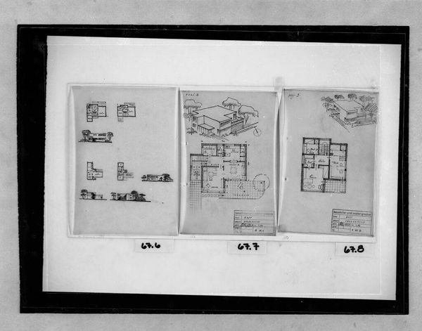 Editor: This is Pettula's architectural plan for the Apartment House for the Interbau Exhibition, designed between 1955 and 1957. It feels so precise, yet strangely abstract. What do you see in this piece? Curator: Well, it is Pettula trying to rebuild Berlin, literally! Look at how the light seems to be considered, even in the shadows cast in the plan. I feel the utopian impulse of the time, the need to construct not just buildings, but a better future. Editor: So, it's not just about bricks and mortar, but about hope? Curator: Exactly! And maybe a dash of postwar optimism. It makes you wonder, what kind of spaces do we dream of now? Editor: I guess architecture says a lot about what we collectively aspire to. Thanks!