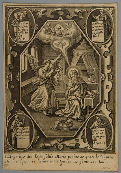Curator: Here we have Thomas de Leu’s “Adoration of the Kings.” Note the intricate lines, the balance of light and shadow – a masterful use of engraving technique. Editor: The composition feels almost theatrical. The star, the figures… they all point towards the Christ Child. It’s a powerful convergence of symbolic elements. Curator: Indeed. The star, of course, signifies divine guidance. And consider the arrangement of the figures – a clear visual hierarchy emphasizing the sanctity of the Holy Family. The very architecture is an armature. Editor: And beyond the Christian narrative, the figures themselves represent a synthesis of cultures and continents, kneeling before a child who will change the world. Curator: Yes, a world distilled into an octagonal format. The details, the use of line, create a sense of depth. It’s a triumph of form. Editor: It's a reminder of the enduring power of myth and faith, conveyed through potent symbols. Curator: A testament to the artist's skill and the enduring themes of devotion. Editor: Precisely, a visual echo resonating through centuries.