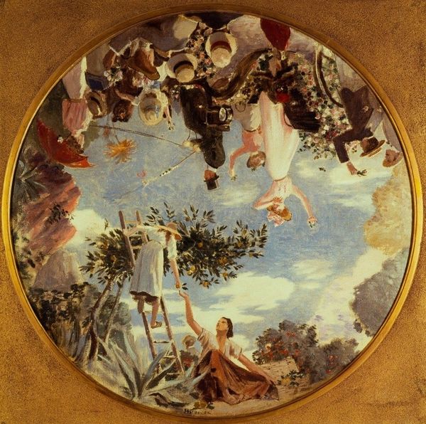 Editor: Here we have "Venus in her Chariot" by Edmund Dulac. The medium looks like watercolor, which gives it this beautifully soft, almost ethereal quality. I find the image so dreamlike, almost like a half-remembered fairytale. How do you interpret this work? Curator: Ah, yes, Dulac... he had such a unique ability to conjure entire worlds with a mere brushstroke. To me, this watercolor isn’t just illustrating a scene from *The Tempest*; it’s inviting us into Prospero’s enchanted island. The gauzy, pastel washes are so suggestive, aren't they? Look at the way he uses light, especially. The light feels… imagined, born not from the sun but from the stage lights of the mind. I wonder if Dulac saw himself as a kind of theatrical set designer, staging a vision for our delight? Does it make you think about being in a theater? Editor: That's a great point! The arrangement does feel a bit theatrical, almost like a tableau. It's not how I initially thought of it, but seeing it as staging gives the piece an additional level. Curator: Absolutely! Think of how those doves, pulling Venus’s chariot, almost seem like actors on invisible strings, and it seems very of its time. The use of symbolism—the doves, the goddess herself—harkens back to earlier, Romantic ideals of beauty, doesn't it? And there's something slightly decadent about the scene too, perhaps alluding to the illusory nature of Prospero’s world. It all begs us to think... what do we hold onto after the final curtain call? Editor: It's amazing how much there is to unpack, even in a seemingly simple watercolor. I wouldn't have considered the staging or that connection to Romanticism. I see it so much more richly now! Curator: Indeed. The most enchanting works are often the ones that offer fresh mysteries with each viewing, aren't they? That, to me, is where art comes alive, doesn't it?
