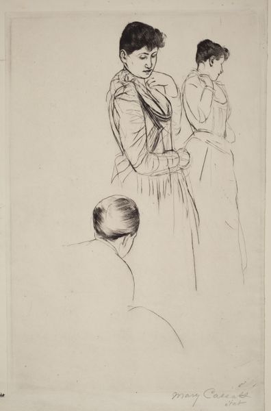 Editor: This is James Ensor's pencil drawing, "Woman Reading." It’s striking how delicate the lines are, creating a sense of intimacy. What strikes you most about the artwork? Curator: As a materialist, I'm immediately drawn to the visible process and the labor involved in this piece. Ensor’s choice of pencil, a readily available and inexpensive medium, speaks volumes about the democratization of art production. Notice how the varying pressure on the pencil creates depth and shadow. What do you think this suggests about Ensor’s engagement with the everyday? Editor: It feels like he’s capturing a fleeting moment, making something ordinary into art. How does that relate to the social context? Curator: Exactly! The act of reading, and the material used to depict it, is important to consider. Who has access to books, literacy, art materials, and leisure? Ensor uses these humble materials and accessible subjects to engage with the labor and life of middle-class women. Consider also, how the sketch could have been produced by a machine if it had been mass printed using lithography, an increasingly industrialized way to produce imagery in Ensor’s time. The mark making highlights the difference. Do you agree? Editor: That makes so much sense. Seeing it as a statement about labor and access changes everything for me. Thanks! Curator: Indeed, it is the attention to these factors that allows us to critically understand Ensor's "Woman Reading."