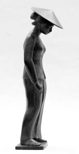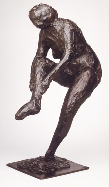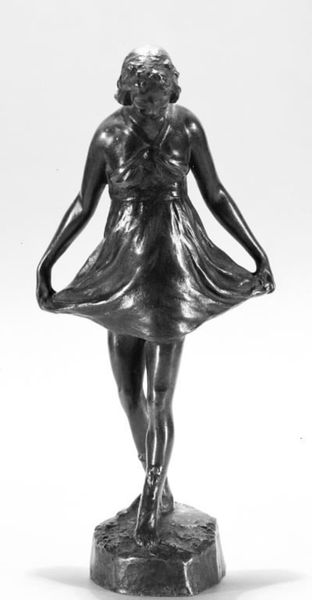H.P. Pedersen-Dan created this small bronze sculpture called "The Stage-Wise: Dancer" at an unknown date, but given that he lived between 1859 and 1939, we can assume it was made sometime around the turn of the century. The figure emerges from the bronze, with marks that suggest it was roughly hewn, not smoothed. I find myself thinking about how the marks, or rather the artist's hand, feels simultaneously bold and tentative, like the touch of a person uncertain of their feelings, but brave enough to follow them anyway. I love how the cloth twists and spirals around her body and how the form seems caught between solidity and ethereal lightness. The gesture, the cloth held aloft, has a real sense of drama. Like Degas's sculptures of dancers, there's an exploration of movement and form here, but also a quietness, a sense of a fleeting moment captured in a permanent medium. Ultimately, sculpture like this, is as much about capturing a feeling, or an idea, as it is about representing reality. It’s about opening up a space for our imagination.