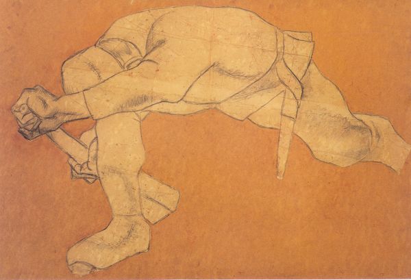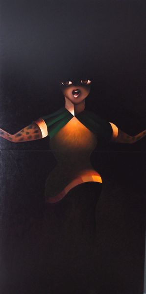 Editor: Here we have Sonaly Gandhi’s painting "Aeny," a striking acrylic piece on canvas, part of the Neo-Expressionist movement. It’s quite intriguing; the figure is bathed in warm colors, yet there’s a sense of vulnerability, almost fragility, heightened by the grid pattern. What is your perspective on this nude? Curator: Ah, yes, "Aeny". It sings to me of hidden selves and exposed anxieties. The choice of acrylic allows for a vividness, but those warm colors are cleverly juxtaposed with the coolness of the subject's gaze. It's a quiet sort of tension, isn't it? It’s intimate and strangely detached. Now, doesn’t that geometric overlay strike you as a sort of cage, or maybe a measuring system imposed onto something fundamentally unquantifiable – the human spirit? Editor: I hadn't considered it a cage before, but that makes a lot of sense. I was more drawn to the puzzle-like quality. Like a game, almost, between the artist and viewer, or even within the subject. Curator: Exactly! And it pulls us right into her emotional landscape, don’t you think? It reminds me of my own days as an undergraduate. I think what draws me in the most is how that fragmentation actually brings about an intimate understanding of the work’s emotive subject! How interesting. Editor: I think what’s most beautiful is how a singular vision can be up to so much different interpretation! Thank you. Curator: My pleasure entirely. What a way to kick start a thoughtful perspective for your visit today.