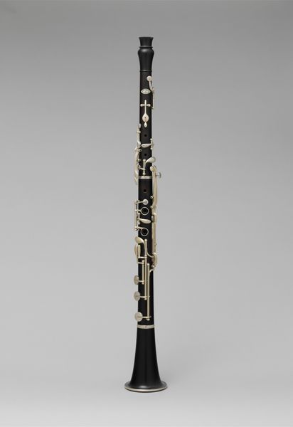 Curator: Here we have an oboe, dating from around 1850 to 1870. Editor: It looks remarkably pristine for its age. A sense of refinement emanates from it—the polished metal keys juxtaposed with the grain of the wood. Curator: Indeed, its preservation allows us to contemplate the societal role of music at that time. The 19th century saw the rise of both domestic music-making and larger-scale orchestral performances. An instrument like this would have been a status symbol. Editor: I’m thinking about who this was made for and the social codes regulating who had access to making or appreciating high culture. Perhaps music, specifically classical music, became a mechanism to reinforce class divisions in this period? Curator: That's an astute observation. Musical instruments and instruction became increasingly linked to middle-class aspirations of refinement and cultural capital. Furthermore, gender played a significant role, as young women from affluent families were often encouraged to learn instruments as a means of attracting a suitable partner. Editor: It's interesting to view something that we would normally assume is an object of pleasure, beauty, and creativity as deeply entwined with social dynamics. This brings forward the power structures operating through and behind art. I would assume such an item was produced with the involvement of several artisans each occupying a different position within their guild system and respective local economy, too. Curator: Precisely. The construction materials of this oboe – the wood and metal – hint at the intersection of different crafts and industries contributing to its existence. It encapsulates more than just an artistic endeavor; it's also about economic structures that were active at the time. Editor: I am struck by its aura; how can such a small thing symbolize so much? Curator: Perhaps, it highlights the powerful and yet often overlooked role of seemingly ‘minor’ artworks as barometers of the grand currents shaping their world.