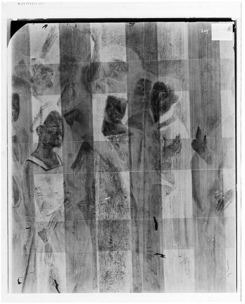 Editor: This is an X-radiograph of "Coronation of the Virgin" by Sano di Pietro. It's fascinating to see the layers beneath the surface, like uncovering hidden stories. What symbolic weight do you see in this image? Curator: The X-ray reveals more than just pigment; it exposes cultural memory. Notice how the halos persist, even through the X-ray. They're potent symbols of divinity, but also continuity, reminding us how certain visual languages endure. Editor: So, the persistence of these symbols reinforces their lasting power? Curator: Precisely. The X-ray, in a way, becomes a modern palimpsest, revealing how the "Coronation" narrative continues to resonate, transformed yet unbroken. What does that say about us? Editor: I never thought about an X-ray revealing such layered meanings. Thank you! Curator: My pleasure. It's a reminder that even the most technical images are laden with cultural echoes.
