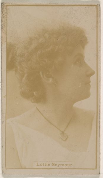Editor: This is "Annie St. Tel," a print from around 1890, part of the Actresses series created by Kinney Brothers to promote Sweet Caporal Cigarettes. The sepia tones give it such an antique feel, almost like a faded photograph. What's your take on it? Curator: Well, it’s more than just a portrait; it’s a piece of social history. These were trading cards, essentially advertisements slipped into cigarette packs. The actresses chosen weren't necessarily the most talented, but the most visually appealing to a broad audience. Why do you think they chose actresses specifically? Editor: Good question! Maybe because actresses were celebrities, relatable figures? It's a fascinating intersection of commerce, art, and celebrity culture, even back then. How do you think this kind of imagery impacted perceptions of women at the time? Curator: Precisely! Actresses represented a changing ideal of women, independent and visible. But also, understand this image was designed to sell cigarettes. So it reinforces consumer culture but under the guise of accessible fame. What about its function interests you? Editor: Its commercial purpose does cheapen the image. Knowing that it's basically a vintage ad makes me question the authenticity of its artistic merit. Did the average person consider this image to be art back then? Curator: It's unlikely that the average smoker viewed these as 'art' in the way we understand it today, but the image definitely circulated in different social stratas due to its use and fame of the actress. These cards were ephemeral objects. It’s through the cultural institutions that they end up being legitimized as historical documents and perhaps “art.” Editor: So it’s almost like the museum’s act of collecting it that transforms its value. Thanks! Now I can consider the impact of popular imagery. Curator: Yes, it reveals how value is constructed by various social systems. Glad I could help to consider all the historical significance, now that it is viewed in an institution such as a museum.