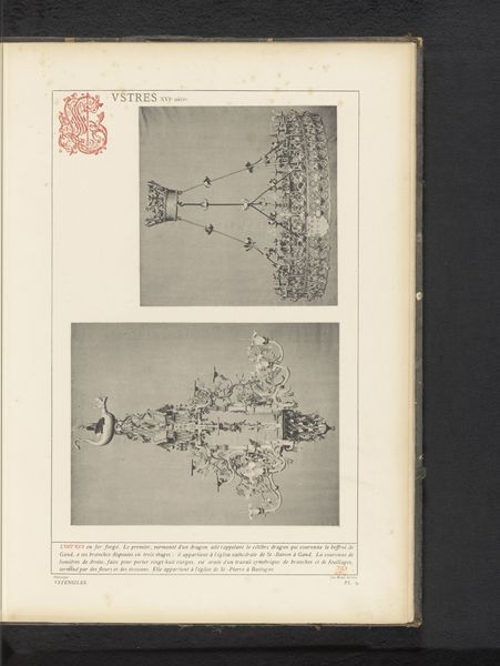 This image presents ironwork designs—a vase and a window frame—dating back to the 16th, 17th, and 18th centuries by an anonymous maker. During this time, ironwork served both practical and symbolic functions, particularly in religious contexts. These decorative elements, often found in churches and aristocratic homes, speak to the period's social hierarchy, where art served to underscore class distinctions. The floral motif adorning the vase mirrors the delicate balance between nature and artifice, reflecting the aesthetic values of the elite. The openwork of the window frame allows for light and air, but it also creates a barrier, suggesting the complex relationship between enclosure and exposure, privacy, and the public gaze. The creation of ironwork transcends mere craft, elevating the medium to high art, the mastery of which requires a sophisticated combination of artistry and breath. Consider how artisans of the time adapted traditional forms to express their visions, and how their work invited contemplation and reflected their identity and place within a highly stratified society.