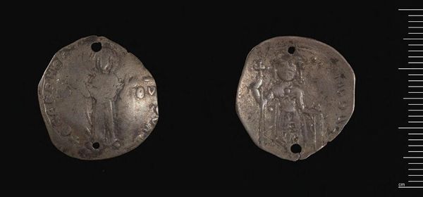 Editor: Here we have a silver coin of Isaac II. It’s incredible how the metal shows so much wear and tear. What can we read into the artistry and usage of this coin? Curator: Notice how the coin's material and form inherently served political and economic functions. Its value isn't just symbolic but tied to silver, a resource extracted, processed, and distributed. The imagery, likely propagandistic, was reproduced through repetitive labor, shaping a collective understanding of power and religious authority. Editor: So, it's less about the artistic skill and more about the coin's role in a larger system? Curator: Precisely. Consider the social context: who mined the silver, who minted the coin, and whose hands did it pass through? The coin embodies a whole network of production and consumption.