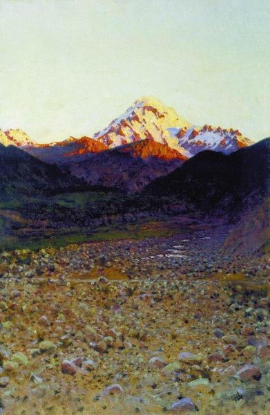 Vajiha Samadova made this painting of Mount Kepez, probably with oils, and look at the process! It feels like she built it up, layer after layer, like the mountain itself was slowly growing on the canvas. What strikes me is the light, that rosy, almost dreamlike light bathing the peak. It’s not just about representation; it’s about feeling. You can almost feel the cool air and the warmth of the sun, all at once. Notice how the strokes in the foreground get darker and denser, creating this depth that pulls you right into the scene. I keep coming back to that pink. It's a kind of optimistic, almost otherworldly hue that contrasts with the darker greens and browns of the foothills. It's like a memory, or a hope, painted onto the mountain. It reminds me of some of Cezanne’s landscapes, that same attention to form and color, but with a uniquely personal touch. It's a reminder that painting is not just about seeing; it’s about feeling, remembering, and making something new.