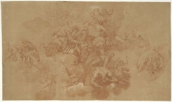 Giovanni Battista Tiepolo rendered Saint Jerome in the Desert Listening to the Angels with pen and brown wash. Tiepolo, an Italian painter of the Rococo period, creates an intimate scene with profound cultural roots. Saint Jerome, a towering figure in Christian history, is shown in a moment of quiet contemplation. The desert, a space of isolation, becomes a crucible for spiritual transformation. Consider the historical weight of religious devotion during Tiepolo's time, where personal piety intertwined with societal expectations. Tiepolo delicately balances power and vulnerability, inviting us to reflect on our inner lives. The composition skillfully develops a narrative of contemplation and communication, asking us to consider how we listen and to what we lend our ears.