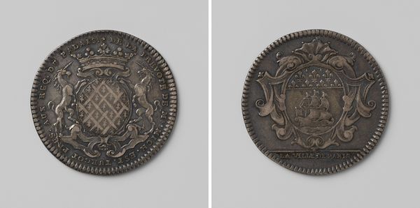 This silver medal was created by Denis Waterloos, commemorating Jean Baptiste Christyn's role as a Spanish envoy during the Peace of Nijmegen negotiations. The medal’s materiality speaks volumes. Silver, a precious metal, signifies wealth and status, reflecting the importance of the depicted figure and the event. Its creation involved skilled craftsmanship, using techniques like engraving and striking to create detailed portraits and heraldic symbols. Notice the fine texture achieved in Christyn's hair and clothing, and the precise rendering of the coat of arms. These elements speak to the artisan's expertise and the value placed on commemorating historical events through meticulously crafted objects. The medal is far more than just a portrait; it is a carefully wrought object that uses material and making to amplify its social and political significance. The use of precious metal, combined with skilled labor, elevates the medal beyond mere currency. The amount of work involved in the production process underscores the importance of the historical moment and the individuals involved. Appreciating the medal means understanding the value of materials, making, and context, challenging traditional distinctions between fine art and craft.