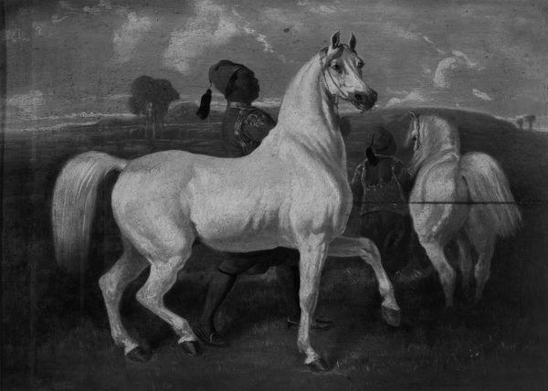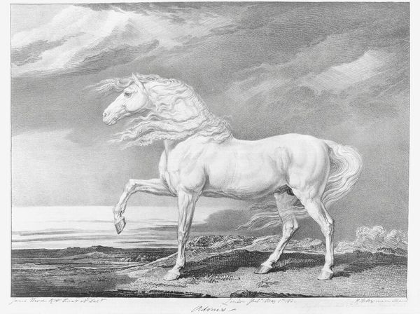 Editor: Here we have James Ward's "Bay Hunter," created in 1817, using charcoal. It has an ethereal quality to it, doesn't it? The soft rendering creates a striking contrast against the defined musculature of the horse. How do you interpret this work? Curator: It's more than just a portrait, isn't it? Consider the context: early 19th-century England, the height of aristocratic power and land ownership. The horse, especially a bay hunter like this one, becomes a symbol of that power. What do you make of the way the horse is posed, so formally, almost stiffly? Editor: It's posed, controlled even. Curator: Precisely. This isn’t a wild, untamed creature, but a carefully bred and trained animal, reflecting the control that the landed gentry exerted over both the land and its resources. This links into feminist theory. Who benefits from the horse and the image of its grace? Who is denied access to it, or must groom and care for it? How does the subjugation of this animal speak to the way humans create and then enforce categories, and then extract the benefit from those categories. The grey palette suggests a somber undertone too, don’t you think? Editor: I hadn't considered the link to class and gender! It gives the piece a whole new dimension, beyond just being a pretty horse. And I agree about the palette -- it adds a sense of restrained wealth. Curator: It speaks to the limited agency, perhaps? Power comes at the expense of some freedom, on the part of both human and animal. Look at the vast history of art that reinforces similar systems. Art can show the subtle machinations of oppression as well as liberation. It prompts us to question those very structures, isn't it? Editor: Absolutely, I can see how understanding the historical and social context can really change the way you see a seemingly simple artwork. Thank you!