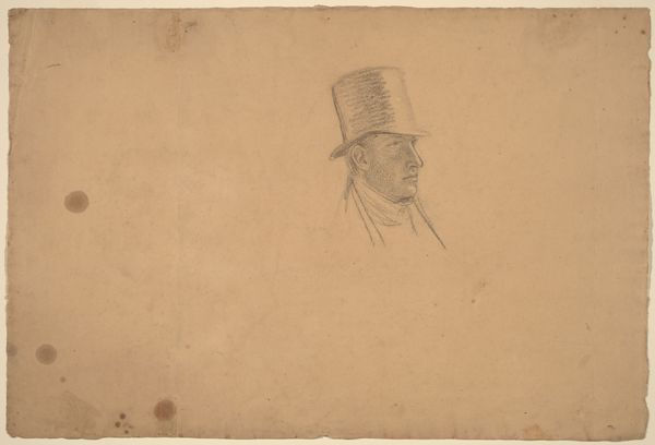 Curator: This arresting pencil drawing, dating from 1846-1847, is by the Danish artist Martinus Rørbye. It’s called "Portræt af 'Strandingskommissæren' samt rids af et barn med bredskygget hat"—or, "Portrait of the 'Beaching Commissioner' and sketch of a child with a wide-brimmed hat." It’s currently held at the SMK, the National Gallery of Denmark. Editor: My first thought is one of wistful introspection. There's such gentle light rendered by the pencil, a soft vulnerability about the 'Beaching Commissioner' that draws me in, and then this ghost of a child faintly sketched to the left. It all evokes a sense of memories half-remembered. Curator: Rørbye, as a prominent figure in the Danish Golden Age, had a deep fascination with the natural world and humanity’s place within it. We often see his depictions of landscapes suffused with a strong Romantic sensibility. It's interesting that he’d capture this official—the “Strandingskommissæren”--likely tasked with overseeing the salvage of shipwrecks and ensuring fair distribution of recovered goods. Editor: It makes me consider notions of power, who it serves, and the lives touched by maritime tragedies. This commissioner, situated within that historical context, makes me think about contemporary border regimes, shipwrecks of refugees at sea, the bureaucratic apparatus behind them. Curator: Absolutely, and this delicate pencil work also acts like a revealing psychological study. There's an evident seriousness, an authority present in his bearing. And yet the almost unfinished nature of the drawing itself gives it this immediate intimacy, and what might we interpret from his solemn look toward an equally faded childlike figure? It suggests something deeply personal to me. Editor: Perhaps an assertion about masculinity itself, positioned so closely against a trace of childhood—it subtly hints at lost innocence or the weight of societal roles forced on men from an early age. I am now more curious about the person, rather than just the figurehead or the position he held. Curator: It's a lovely layering of context and introspection that Rørbye achieves with such subtle means. A study of not just a man, but also the artist, a lost era, and of the present, inviting us to contemplate so much. Editor: Yes, definitely! A stark, yet quietly lingering reminder of what once was and perhaps still persists.