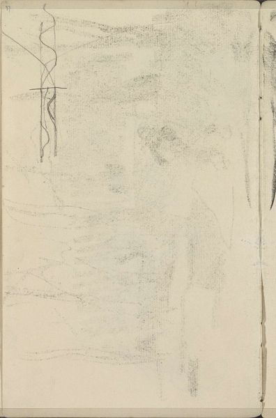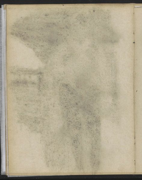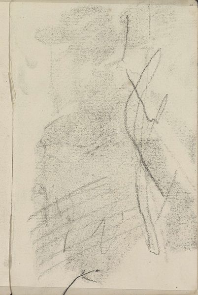 Editor: We're looking at a piece called "Abklatsch van de krijttekening op blad 6 recto" by Isaac Israels, made sometime between 1887 and 1934. It's a pencil drawing on paper. It strikes me as incredibly fragile, ephemeral, almost like a memory fading away. What stands out to you when you look at this sketch? Curator: Ah, yes, "fragile" is a wonderful word for it. It’s a wisp of an image, isn't it? For me, it’s like eavesdropping on the artist's thought process. Israels was a master of capturing fleeting moments, the hustle and bustle of city life. This feels almost like a secret glimpse into his practice – less about finished perfection and more about raw observation. Editor: I can see that, it's a peek behind the curtain. Do you think that rawness enhances the piece? Curator: Absolutely. It’s almost voyeuristic. Think about how photography was changing art at this time – freeing painting and drawing to explore subjectivity, impression, feeling. It feels deeply modern, doesn’t it? You can practically feel Israels wrestling with form, light… what do you feel when you think about this time period for artists like Israels? Editor: I think it feels less constrained, less beholden to rules. Maybe that’s why the fragility of the piece feels so fitting. Curator: Precisely! A rejection of the rigid. This little sketch is like a sigh of liberation. A space for quiet contemplation. Editor: I’ll definitely look at other Impressionist sketches differently now. Seeing that almost "anything goes" attitude in something so simple has totally changed my perception. Curator: Wonderful! That’s the beauty of these intimate sketches, they whisper secrets about creativity and the artistic journey if you pause to listen.