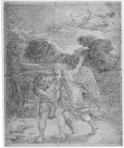 Curator: These X-radiograph(s) at the Harvard Art Museums reveal the hidden structure of “Flight into Egypt,” a painting by Sebastiano Ricci. It's fascinating to see the bones of the composition, isn't it? Editor: Totally! It's spooky, almost like looking at a ghost story. All I see is raw emotion: anxiety, tenderness, maybe even fear in the gesture of that protective hand. Curator: The image gains another layer when considering this biblical scene through the lens of migration and displacement. The Holy Family's flight echoes the struggles of refugees throughout history. Editor: Right! And seeing it stripped down like this, it makes you think about the unseen layers of any journey – the fear, the hope, the things they carry with them. Curator: Precisely! We can trace the evolution of the artist’s technique and choices and understand the history of marginalization. Editor: It's wild how peeling back the layers can uncover such raw human stories, isn't it? Curator: A reminder that art, even in its most skeletal form, reflects our shared human experience. Editor: Definitely gives you something to chew on, doesn't it?
