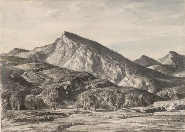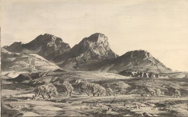 Editor: So, this is Thomas Fearnley's "Sketch from Parish in Norway," created in 1826 using primarily graphite, charcoal, and pencil on paper. It’s really evocative. The tonal range creates this immense depth, pulling you into the landscape. What do you see in this piece? Curator: I see a visual document reflecting early 19th-century Romantic ideals tied to nation-building. Landscape art wasn't just about pretty scenery. It played a crucial role in constructing a national identity. Norway, in 1826, was still under Swedish rule, right? So, think about what depicting its unique landscapes could signify politically. Editor: That’s interesting, I hadn't thought about it in those terms. How does the artwork achieve that nation-building effect? Curator: Consider how Fearnley highlights the sublime and untouched qualities of the Norwegian terrain. It reinforces a narrative of Norway's distinct character and ancient roots, separate from foreign rule. The seemingly objective portrayal masks a political agenda—almost like visual propaganda. Is this work displayed in the National Gallery, or another gallery of the era? Editor: It’s actually held in SMK – Statens Museum for Kunst, the National Gallery of Denmark. I am a little surprised it's in Denmark and not in Norway. Curator: The image existing within the Danish gallery adds to its story; The movement of art affects its socio-political effect. So it wasn't displayed in its nation of origin, so how would this image shape the views of its landscape within its own local context versus international spaces? And who has access to these artworks in either locations? These images construct complex global power relations and national aspirations. Editor: I see what you mean! It's fascinating to consider how the painting's meaning shifts depending on who is viewing it and where it's being displayed. Thanks, I have definitely learnt so much about the role of political influence and nationhood represented within artwork! Curator: Indeed! It demonstrates how art acts as a cultural and political tool. Food for thought, isn’t it?