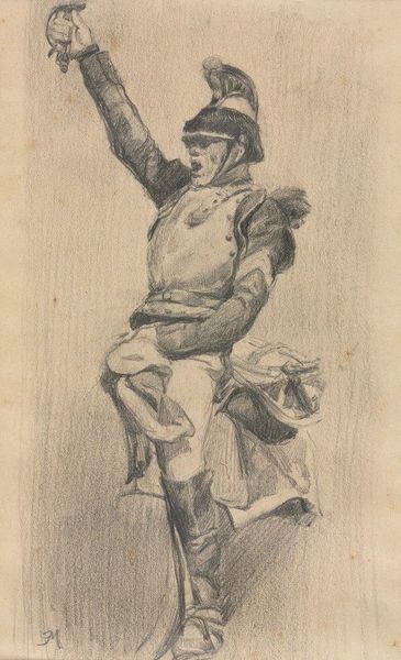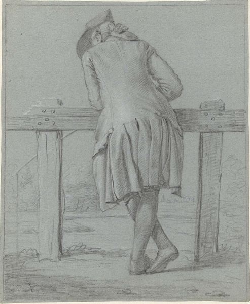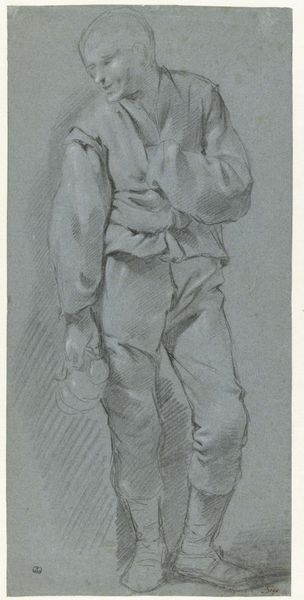 Editor: This drawing, "Young Man Putting on His Boots" by Jordanus Hoorn, dating from 1763-1833, is rendered in pencil. There's a wonderful simplicity to it, a sense of everyday life captured in the moment. What strikes you most about this piece? Curator: I’m interested in the *how* of its production. Look at the deliberate use of pencil. Pencil, at the time, was increasingly available as a manufactured product. It signifies a shift away from artisanal preparation towards industrialized material consumption, even within the seemingly individual act of artistic creation. The lines aren't spontaneous. Hoorn would have chosen that pencil, that paper. The softness or hardness of the graphite – did that play a part in representing his subject? Editor: That's fascinating, I never thought about the pencil itself as a key element. How does the choice of such a readily available material relate to the genre-painting aspect? Curator: Genre painting itself became more widely popular as printing technology enabled broader audiences to engage with scenes of daily life, mediated through mass reproduction and availability of affordable artworks. How are the themes of production, labor, and distribution implicated in the work? Is he portraying someone setting off to work, or getting ready for something else? Editor: Hmm, his somewhat plain clothing would suggest work or travel rather than some social outing. It's as if Hoorn documented someone about to participate in the economy, using a tool which itseld represented changes in production and economic growth... Thank you! Curator: Consider, too, what its original viewing context might have been, whether for domestic viewing or study. Material conditions dictate how a piece is made and received, after all. Something to ponder.