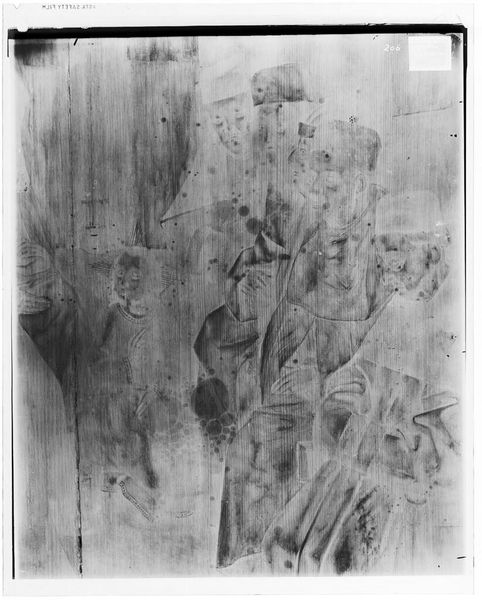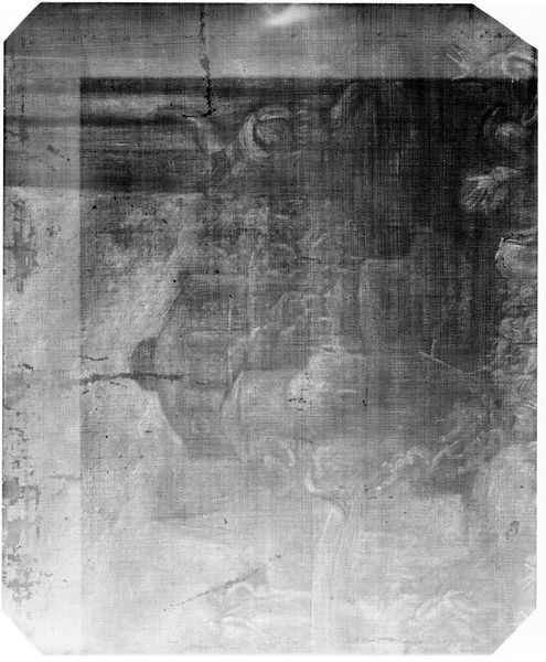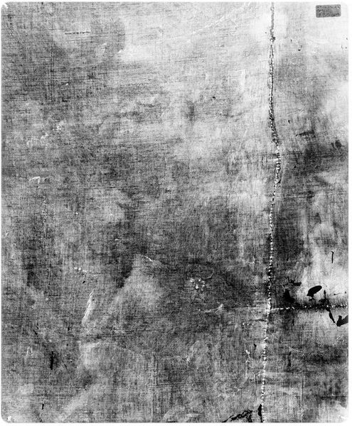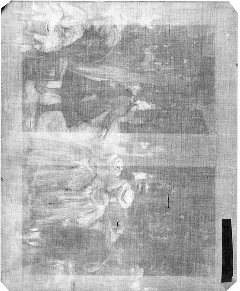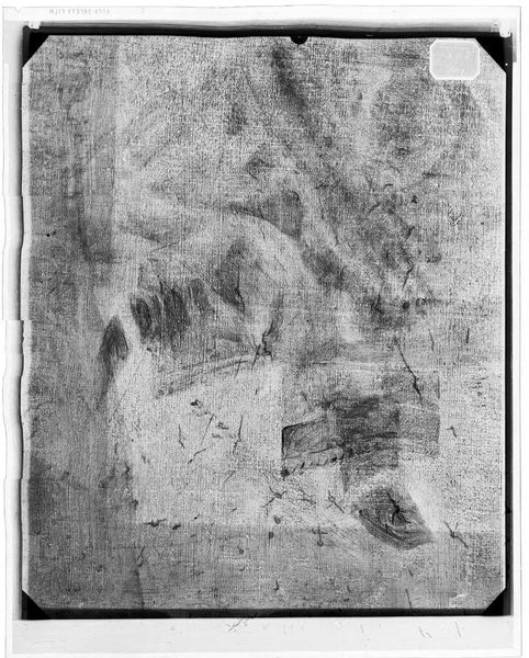 Curator: This is an X-radiograph of the “Male Portrait” attributed to Bartolomeo Veneto, currently held in the Harvard Art Museums. Editor: It appears quite ghostly, almost spectral. The textures are intriguing, revealing layers beneath the surface we can't normally see. Curator: Precisely, we can observe the density and distribution of the original materials, giving us clues about the underdrawing and painting techniques employed by the artist. Editor: Does this kind of portraiture typically convey status or ideals of masculinity? Or does the X-ray reveal different symbolic weight? Curator: Intriguingly, the radiographic process alters the visual language. It strips away surface glamour to expose the structural essence, prompting us to reconsider portraiture's fundamental purpose. Editor: It’s like seeing the bones beneath the flesh, a potent reminder of mortality and the layers of meaning embedded within an image. Fascinating how the science enhances the art. Curator: Indeed, technology reveals hidden truths, reframing our understanding of the creative process.