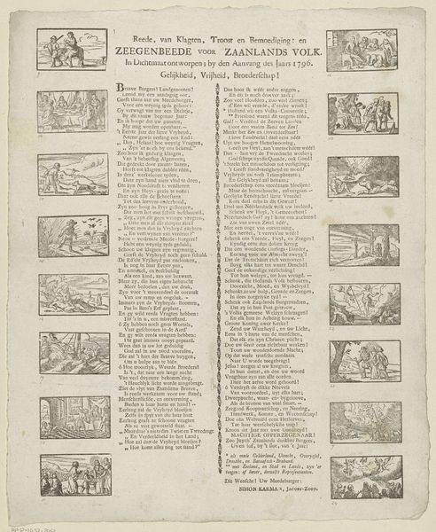 Curator: We're looking at a piece called "Spiegel der Reden voor de wanhopende Actionist, 1720," or "Mirror of Reason for the Despairing Stock Jobber, 1720". Jacobus Schijnvoet is credited as the creator of this engraving, etching, and print. Editor: It's so detailed! There’s so much happening, I don’t know where to look. I get a sense of chaos mixed with aspiration, like people are reaching for something that’s just beyond their grasp. What strikes you first about this artwork? Curator: Well, considering the period, I immediately think about the South Sea Bubble and the Mississippi Company bubble. It's very likely a satirical piece commenting on that moment. We see figures weighed down, perhaps by their failed investments, while another figure ascends to the heavens—or maybe, a figure who's hanging by a thread. Editor: The image is a perfect metaphor for the anxieties of the time. A few figures are literally weighed down with material, representing either wealth or the instruments for financial dealing. Others reach, nearly climb each other, seeking release in the sky. Given your understanding of history, who or what would you argue are these players here, besides investors? Curator: Given the political climate in the Dutch Republic during the early 18th century, this engraving most likely points at complex networks of global trade, mercantile capitalism, and colonialism. Those bubbles triggered social upheaval, revealing fault lines of inequality and colonial exploitation. Editor: Absolutely. Reason, symbolized in the engraving, would seem to be acting to condemn those caught up in bubbles and financial desire. How much access did ordinary citizens have to financial information or, dare I say, reasonable counsel? Perhaps more importantly, who decided what constituted “reason”? What does it say about access, class, and control during this period? Curator: That's a compelling question! Certainly, access to information was unequal. But more generally I’m fascinated by how anxieties about economics are manifested in visual culture. What strategies were employed? Did this art become popular? Editor: These visual responses acted as powerful tools for critiquing systemic injustices, raising awareness, and mobilizing resistance. That's one reason why history and art need to exist in constant dialogue, each always re-examining the other. Curator: I agree. This reminds us of how economic folly, class, and even power never truly vanish, only shape-shift over time, while art bears witness to these metamorphoses.