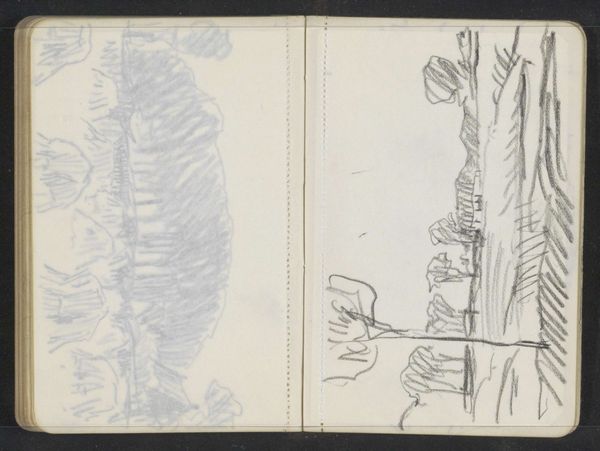 Alexander Shilling made this landscape sketch with graphite pencil on paper. These are modest materials, common to many artists, and indeed accessible to pretty much anyone. But consider what Shilling has done with them. The graphite's dark, almost bruised tonality against the bright paper is key. See how the artist allows the pencil’s marks to remain visible, even raw? He is not trying to create a perfect illusion, but rather to capture the feeling of being in this landscape, with the light filtering through the leaves and branches. The double-page spread of the sketchbook format is also important. It makes us aware of the artwork as an intimate, handheld object. This is not a grand painting meant for display in a palace, but an impression jotted down in the field. By emphasizing the immediacy of the sketch, Shilling asks us to value the direct experience of the artist. He elevates this humble process to the level of high art.
