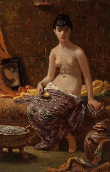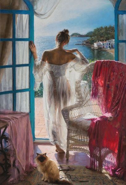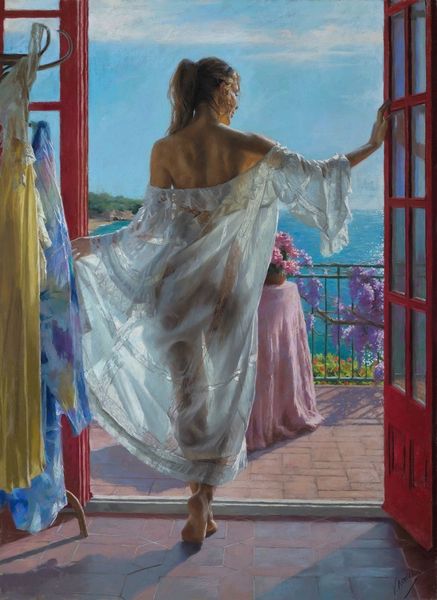 Vicente Romero painted this piece, called Contentment, using oil on canvas, a traditional medium that has been around for centuries. But think about the materiality of oil paint itself. It's made of pigment, often minerals mined from the earth or synthesized in a lab, combined with linseed oil, extracted from flax seeds. The process of grinding pigment and mixing it with oil is labor-intensive and requires skill. Romero’s technique is remarkable. You can see in the way the light filters through the sheer curtains, the delicate folds of the fabric, and the soft curves of the woman's body. There's a real emphasis on craft in his handling of the brushstrokes. In doing so, the artist engages with a long history of creative practice rooted in aesthetic beauty. In turn, a painting such as this prompts us to think about artmaking and the labor, politics, and consumption involved in its production. By understanding the materials, processes, and social context behind this work, we can appreciate its full meaning.