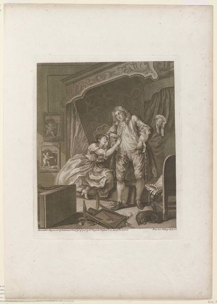 Charles Grignion I created this illustration in London in 1793, using etching, a printmaking technique that relies on the corrosive power of acid. The fine lines you see result from drawing through a waxy coating on a metal plate, then exposing the plate to acid, which bites into the exposed lines, leaving an image that can be inked and printed. This wasn't fine art, but rather a reproductive method, used to disseminate images widely and cheaply. This particular image illustrates a scene from Tobias Smollett's novel, "The Expedition of Humphry Clinker". The narrative illustrates social conditions of the time. Consider how this process democratized art, making it available to a wider audience than ever before. While it may lack the prestige of a unique painting, this print offers valuable insights into the social and economic structures of 18th-century Britain. Ultimately, considering the materials and means of production challenges traditional hierarchies between art and craft.