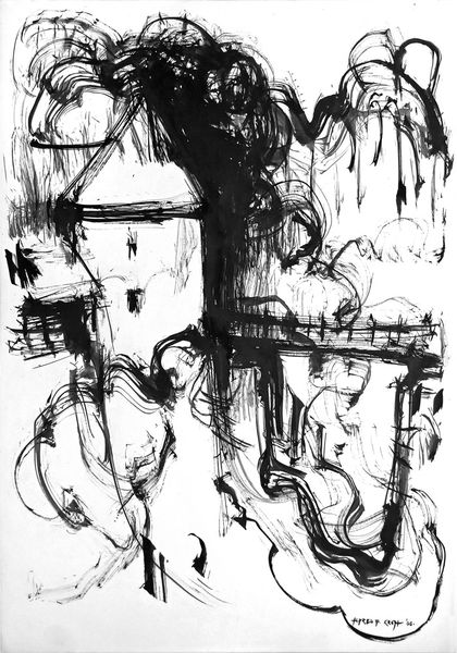 Editor: Here we have an untitled ink and graphite drawing by Ulfert Wilke. The composition is fascinating; it looks like abstract calligraphy, a language I can’t quite decipher. What strikes you about this piece? Curator: What I see is the labor embedded in each stroke. The gestural marks of ink and graphite, repeated and layered, speak to a deliberate process. Consider the materials themselves: ink, historically tied to communication and record-keeping, and graphite, the stuff of sketches and drafts. Wilke elevates these quotidian materials, pushing them beyond their functional roles. Editor: So you're saying the value comes from the act of creation, rather than a message it conveys? Curator: Precisely. The process of mark-making becomes the subject itself. This piece challenges the traditional hierarchy placing painting above drawing, fine art above calligraphy. The materiality directs our attention to the means of production. We should consider how Wilke’s practice reflects broader shifts in artistic production after World War II, toward process and the ephemeral. It becomes about deconstructing the art object as precious commodity, and more the performative aspect of its creation. Editor: That’s really interesting. I was so focused on trying to decode some kind of meaning within it, I didn't really stop to think about it in terms of labor and value. Curator: It forces us to reconsider value. Not what the object represents, but what it *is*, and how it came to be. The act of meticulous, repetitive mark-making in itself proposes a certain dedication that could only derive from the artist's lived and practical understanding. Editor: I’ll definitely look at abstract work differently from now on. Thank you. Curator: My pleasure. Seeing art through the lens of materials and production can unlock a whole new world of meaning.