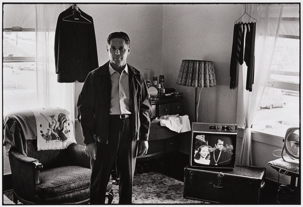 Curator: This is Robert Mapplethorpe’s photographic portrait of John McKendry, part of the Tate collection. The severe cropping is quite striking. Editor: Yes, and unsettling. The cold starkness of the wall, the mundane electrical outlets, contrasted with the intimate, almost vulnerable, slice of a human face. Curator: Mapplethorpe's process of image-making always considered the final presentation and material impact. The silver gelatin print enhances the stark contrasts. He elevated photography to the level of fine art. Editor: The outlets, almost like a crude trinity, feel symbolic. Power, connection, but also emptiness, a vacant space like the missing half of McKendry's face. Curator: I see the industrial aesthetic as reflecting a societal shift, a comment on the increasing mechanization of life, even intimacy. Editor: Perhaps. Or maybe it's just Mapplethorpe playing with visual metaphors, using everyday objects to mirror the complexities of identity. The photograph is an artifact of their friendship. Curator: An intriguing perspective. It highlights how the physical and social conditions shaped both the artist’s vision and the subject’s representation. Editor: Indeed. Ultimately, art provides a lens through which we can see the layers of meaning in everything.