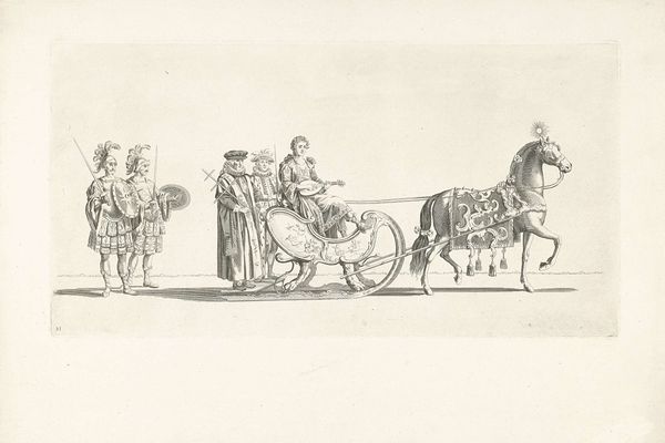 This drawing, made in Amsterdam between 1810 and 1825 by an anonymous artist, depicts a funeral procession, dominated by the somber black attire and draped carriage. Black, universally associated with mourning, symbolizes not just the end of life but also a transition, a gateway to the unknown. The horse-drawn carriage, shrouded in black fabric, is a motif that echoes through centuries. Recall the ancient Roman pompa funebris, where the deceased was paraded through the city, or even the medieval danse macabre, where death rides a horse, reminding us of mortality's relentless journey. The collective memory of these processions invests the image with a profound psychological weight, stirring deep-seated emotions connected to loss and remembrance. Note how the mourners walk in lockstep, their faces obscured, their individuality subsumed by the shared ritual. This procession is a public performance of grief, a communal expression of sorrow. The echoes of such solemn processions resonate even today, connecting us to a timeless human experience.
