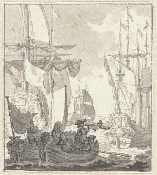This print, made by Simon Fokke, captures Willem III’s departure from Hellevoetsluis in 1688. It’s an etching, a printmaking process that involves using acid to cut into a metal plate, which is then inked and pressed onto paper. The material qualities of an etching—the crispness of the lines, the fineness of detail—lend themselves well to historical narratives. Etchings like this one were often made in multiples, a relatively inexpensive way to circulate images and ideas. It's a democratic medium, in a sense, making it possible to disseminate the likeness of important figures to a wide audience. Consider the labor involved: the skilled hand of the etcher, carefully rendering each line, and the labor of the printer, producing numerous copies. These are processes deeply embedded in the social and economic fabric of the 18th century. Next time you encounter a print, remember that the story is not just in the image itself, but also in the materiality and the making.