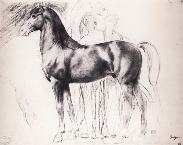 Curator: This artwork is titled "Horses - white/gray I" by Małgorzata Serwatka. It appears to be rendered in oil paint and charcoal, displaying elements of both drawing and painting. What strikes you initially about this piece? Editor: There’s a dreamlike quality, isn't there? It's as if I’m peering through mist at these two horses. The muted palette adds to that sense of gentle ethereality. Curator: Indeed, the limited color range, predominantly grays and whites, gives it a timeless quality. Horses, historically, have represented various aspects of power, freedom, and even grace, haven’t they? And here they are almost spectral. Editor: Absolutely. Horses also speak to our relationship with the natural world. Here, the simplification of form reduces them to archetypes almost. Note how their features are blurred and their bodies ghostlike. The use of charcoal brings the viewer to consider more basic artistic intentions. It has the hallmarks of Paleolithic cave paintings! It really seems to pull up cultural memory from a distant, unknowable place. Curator: The realism that the artist strives for adds complexity to this interpretation of historical artistic symbols. Yet, this is not an idealized scene. The artist presents the animal’s mundane aspect, even, which creates another possible social context. Editor: Do you think Serwatka is inviting us to re-evaluate the symbols or traditional heroic narratives associated with the horse, perhaps offering a commentary on the relationship between the noble steed and modern life? Curator: That’s a compelling argument. Serwatka, through this work, offers a dialogue between traditional symbolism and contemporary experience, compelling viewers to reconcile iconic images with lived realities. This piece invites us to contemplate the ways historical depictions inform our perception of the world, but also considers the political dimensions inherent in representation. Editor: Precisely. A quiet, profound consideration of how we are linked to our own past. I think that as an iconographer, it’s a real pleasure to think through. Curator: It really prompts one to reflect on the role of art in preserving and challenging our understanding of history and nature, which I feel it expresses effectively.