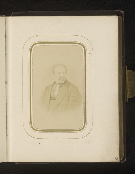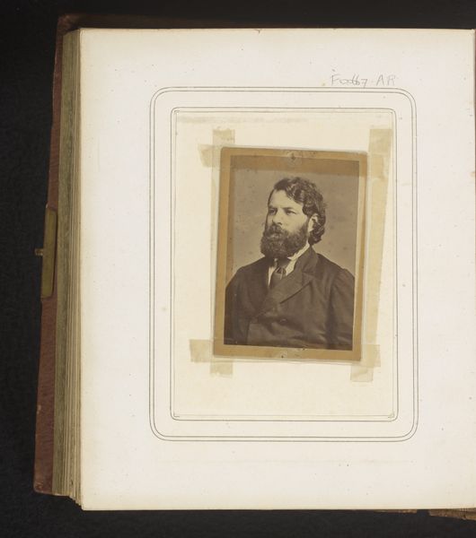 Curator: What a fascinating image. This is an albumen print titled "Portret van een man met baard," placing its creation somewhere between 1860 and 1900. Editor: It's a captivating portrait, somber and quite muted in its tones. The man seems serious, almost stern, and the detail captured despite its age is impressive. It feels like looking into a bygone era. Curator: Exactly. The albumen process was quite popular then, producing a smooth surface from egg whites coating the paper. These prints allowed for much sharper details than previous methods. I wonder, what was the social standing of photography at the time? Was it truly for everyone? Editor: Photography in that period was democratizing, relatively speaking, although initially a pursuit primarily for the wealthy or those associated with scientific advancement. Studios opened, however, creating access to a wider public wanting to document their lives, to create visual records for remembrance, self-fashioning, or social climbing. Curator: Thinking about the materials used - the albumen, the paper, the chemicals, the whole production – it all implies a specific economic model and labor dynamic. These portrait studios were not solely reliant on artistry but industrializing craft. How did their pricing compare with having a portrait painted? Editor: The economic advantage was considerable. Photographic portraiture allowed even the emerging middle class to visually manifest their presence, to participate in constructing an image of the family, and contribute to the democratization of representation. Consider the role of the photo album; how did the display of images in the home shape the identity of families, communities, nations? Curator: The album becomes another curated space! I'm starting to imagine all these little print factories, churning out image after image. Editor: Absolutely, and while mass produced it still carries an undeniably compelling intimate and lasting trace of its historical moment. Curator: Seeing it within the history of photography brings so many layers to the surface, it has helped give this image so much more depth! Editor: For me too! The process is inextricably linked to the subject in capturing more than meets the eye.