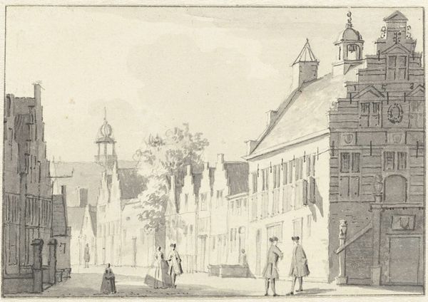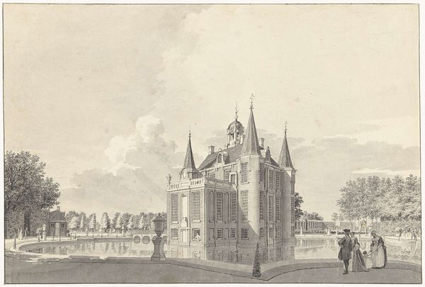 Cornelis Pronk created this drawing of 't Huis den Ooy van Achteren. Pronk was working during a fascinating period of Dutch history. The Golden Age had passed, but wealth and social hierarchies remained pronounced. Here, we see the rear view of what was clearly a grand estate, likely home to one of the period's elite families. Consider the figures in the foreground. They appear almost like set dressing, included to emphasize the scale and grandeur of the house. Their clothing and posture speak to a certain social standing, yet they are dwarfed by the architecture. What does it mean to frame the lives of individuals against the backdrop of such wealth and privilege? The drawing becomes not just a depiction of a place, but a commentary on social relations and power. The drawing invites us to reflect on the lives lived within and around these spaces. It's a reminder that the story of any place is also the story of its people, their struggles, and their dreams.