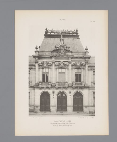 Curator: Here we have a photograph of Sint-Michielskerk, or Saint Michael's Church in Leuven, taken sometime before 1881. It beautifully showcases the architecture of the time. What’s your immediate take on this? Editor: It's monumental! Seriously, it feels like looking at a fossilized cloud—so ornate and heavy, yet reaching upwards. A total visual power statement, frozen in stone, of course. Curator: Indeed. It's interesting how this print captures both the architectural details and a sense of the city’s spirit. Cityscapes like this one speak volumes about a place's cultural identity. Do you notice the slight medieval touches woven into a more Realist approach? Editor: Oh, absolutely. It’s a visual layering of eras! That blend of architectural realism with this echo of the medieval really adds to its intrigue. You know, it reminds me of those old, illustrated manuscripts. So meticulous! It almost makes me want to trace those lines with my finger. Curator: This brings to mind a connection with illuminated books—architecture acting as both container and contained symbol within city's greater history. Think about the social, political, and spiritual values embedded within the bricks themselves. Editor: That’s such a powerful connection! A sort of tangible history-painting... Layers upon layers of intention, belief, all physically manifesting in the here and now. Curator: And even within the seemingly objective format of a photograph. Editor: Right? Like even 'reality' bends to tell its story. Curator: What a striking synthesis of medium and message. A compelling glimpse into a very specific moment and place, and time capsule reflecting enduring human ambition. Editor: Exactly. A postcard from the past, whispering ambitions in stone. It makes you wonder about all the dreams and dramas it witnessed before the shutter clicked. It feels like a grand old novel.