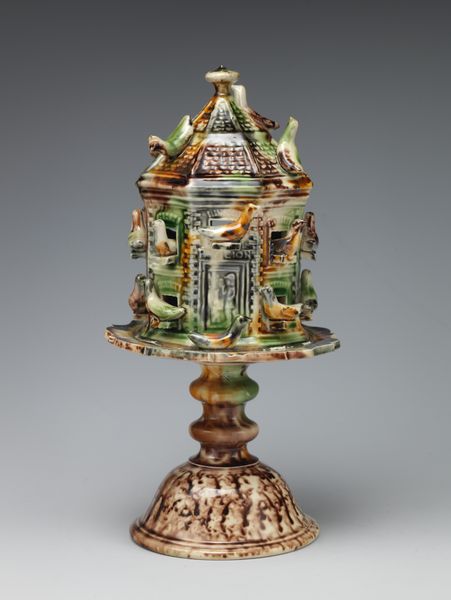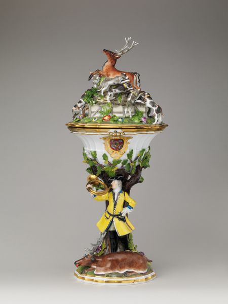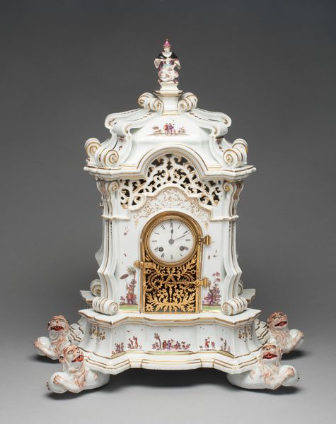 This “Chinese Pavilion”, standing at just over 15 inches, was crafted by the Frankenthal Porcelain Manufactory. Note the delicate use of porcelain and the vibrant polychrome enamels. The structure is an intricate display of architectural form and decorative art. The pavilion's design draws heavily from the visual language of Chinoiserie, a European artistic style reflecting Chinese motifs. But consider how the pavilion integrates structure with surface decoration, and how the interplay between the architectural elements and the painted scenes blurs the lines between form and ornament. The figures are positioned to animate the pavilion, and the open structure of the pavilion allows for visibility from multiple angles. This invites you to view it in the round and actively engage with its spatial qualities. Notice, lastly, how this porcelain work merges cultural fantasy with technical skill. It challenges us to think about the relationship between imitation and interpretation, and how cultural symbols are translated across different artistic media.