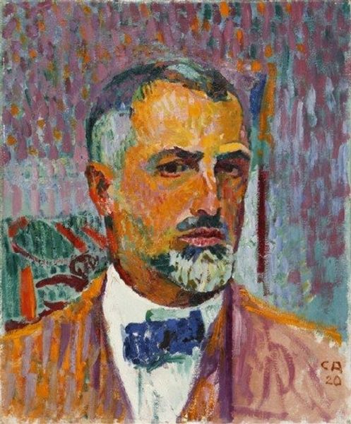 Tyko Sallinen created this self-portrait, Omakuva, with oil on canvas sometime in the early 20th century. It’s so immediate, the marks so present; the color palette is limited but intense. You can feel Sallinen working, making decisions, adding and subtracting. There’s a real materiality to this painting. The brushstrokes in the blue background are thick, directional, almost like a stormy sky. This contrasts with the smoother, blended areas of his face, where the paint seems thinner, more transparent. The bow tie is a study in contrasts, sharp-edged but with a soft, almost smudged quality. And that signature! It’s like a final flourish, a confident assertion of authorship. Sallinen’s work reminds me a bit of early Kirchner, that same raw, expressive energy, that willingness to leave the marks visible. Both artists seem to be less concerned with depicting reality and more interested in capturing an emotional state.