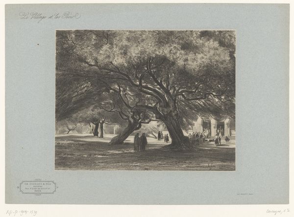 Fritz Dinger made this print, "Village scene with inhabitants in Sunday clothes," using etching around the mid-19th century. The setting evokes a certain romantic ideal of rural life. The print presents a view of the community on their day of rest, dressed in their best clothes. In the mid-19th century, rapid industrialization and urbanization were transforming European society. The rise of factories and cities led to significant social changes and often harsh conditions for the working class. In this context, idyllic images of rural life gained popularity as a form of escapism and a way to celebrate traditional values. It serves as a window into the aspirations and values of a society undergoing significant transformation. The artwork gently suggests the emotional weight of societal shifts, seen through the lens of everyday life.