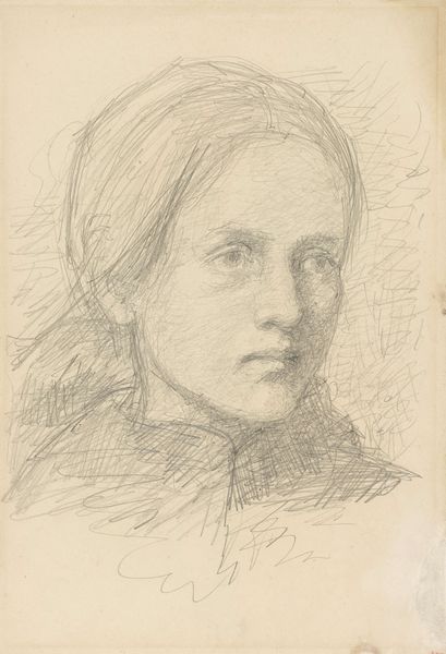 Editor: This is "Young Girl in Profile with Pulled-Back Hair," an etching by Frans Schwartz, created in 1899. There's a somber, almost haunting quality to the way the artist captures the young woman's gaze. How do you interpret this work? Curator: The work feels incredibly contemporary, even though it was created over a century ago. To me, it speaks volumes about the societal constraints placed on women during that period. Consider the gaze; it’s averted, almost resigned. Do you see how the "pulled-back hair" might symbolize a forced conformity, a suppression of individuality? Editor: That's a fascinating perspective. I hadn't thought about the hair that way, more that it was simply the style of the time. But conformity definitely makes sense when thinking about social constraints of the time. Curator: Precisely. And the etching medium itself—a process that demands precision and control—could be seen as a metaphor for the restricted roles available to women then. Schwartz, as a male artist, is capturing not just a likeness but also a feeling. We must ask ourselves, what is his role, as a man, depicting this? Editor: It's interesting you mention his role as a man. It almost feels voyeuristic now that you bring it up. Was it typical for male artists to create such intimate portraits of women at that time? Curator: Intimate, yes, but through whose gaze and for whose consumption? Such portraits, even those seemingly "realistic," participated in shaping and reinforcing societal expectations around female beauty, docility, and submission. Who was this “young girl?" What class, background, identity does she have that informed her experiences? How is this portrayed here? Editor: Wow, I’m definitely seeing this in a different light now. Curator: These considerations aren’t about judging the artist, but understanding how artworks are active participants in shaping broader cultural narratives and systems of power. It requires a lens deeply entrenched in how race, class, and gender affected the sitters, the artwork, and even how it’s interpreted today. Editor: Thanks, that's given me a lot to think about in approaching not just this artwork, but others in the museum.