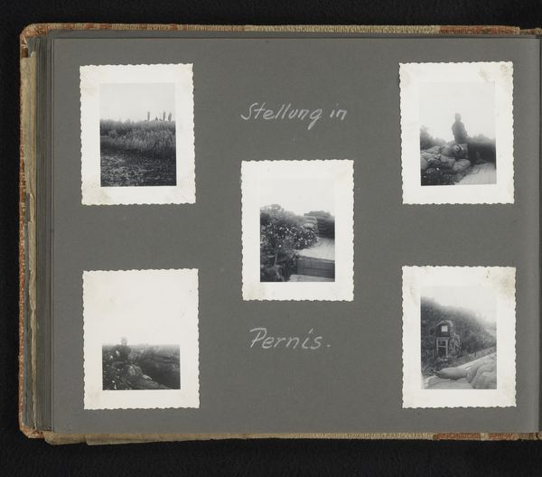 Curator: Here we have an intriguing gelatin silver print titled “Duitse oorlogsschepen,” or "German Warships," taken sometime between 1940 and 1941. It's part of the Rijksmuseum's collection. What are your first thoughts? Editor: Stark, almost melancholic. The composition of the three framed gelatin silver prints creates a sense of quiet observation. There's a visual weight to the dark, foreground foliage that almost dwarfs the subject in the distance. Curator: Right, the artist, Anonymous, it is intriguing because of the layering involved: the page the handwriting. Given the dates, it makes one think of the Nazi occupation. One must assume the paper would be harder to acquire, perhaps. A snapshot from an occupied territory. Editor: Exactly. It also makes me wonder about the gelatin silver process itself in this context. How readily available were the materials? Was it a subversive act to document these ships, a form of resistance utilizing accessible technology? Curator: The material fragility heightens the image’s poignancy. We look at these gelatin silver prints on a worn album page and they are testaments. The formal contrast, the ships as symbols of power against the anonymous plants as quiet witnesses... Editor: Formally, the horizontal lines of the water and the distant ships create a static, almost suffocating space. It’s like a visual representation of the occupation itself – a heavy, immovable presence. Curator: I see how you infer meaning from its layout, and the photographer’s situation would've influenced access and artistic freedom. What does it tell us about how people find ways to document, to record history, under duress? The choice of subject matter alone speaks volumes. Editor: Yes, this work creates tension between the visible, the warships in grayscale, and what is unseen: the daily life of the Dutch under occupation. It also speaks to how even realism, through the choices of its presentation, becomes inherently symbolic. Curator: Ultimately, this photographic record reveals not just the presence of German warships, but also resilience of the human spirit to remember. Editor: I agree. The beauty of form intertwines with social memory; offering potent commentary on history.