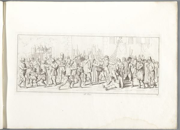 This drawing of a "Rederijkersoptocht met een door paarden getrokken kar met koningin" was completed around 1620 by S. van Zanten. The linear design, rendered in monochrome, captures a celebratory procession. Observe how van Zanten uses line and form to create a sense of depth and movement. The figures are meticulously detailed. The composition leads your eye from the foreground with its array of characters to the horse-drawn cart carrying what appears to be royalty. Consider the semiotic implications of such a procession. What cultural codes are at play here? This is not merely a depiction of a parade, but a staging of power, status, and communal identity. Each figure is placed in such a way that it speaks to the social structure of its time, and to the role of the artist as interpreter. The careful rendering of each element, from the costumes to the expressions on the faces, emphasizes the importance of representation and the ways in which art functions as both a mirror and a shaper of society.