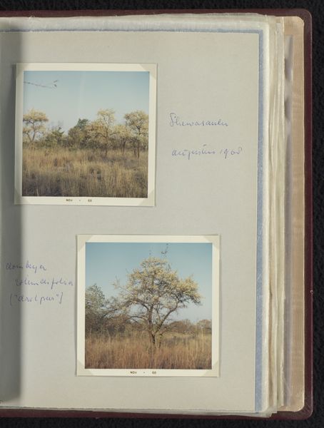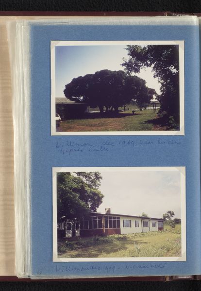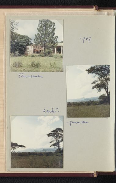 Curator: Here we have a photograph, seemingly captured in a personal album, showcasing the "Woonhuis van Willem van den Berg in Shewasaulu, Zuid-Afrika," or Willem van den Berg's house in Shewasaulu, South Africa. It was taken in 1969. Editor: My initial feeling is of isolation. The house seems so low and horizontal, almost hiding in the landscape. It's engulfed by that overgrown lawn, making it look rather secretive and a little melancholy, even under the bright sky. Curator: It's interesting that you pick up on isolation. South Africa in 1969 was, of course, under the heavy weight of Apartheid. Even a seemingly simple image like this carries those implications of segregation and division within the social and political landscape. The fact it is found in a personal photo album invites viewers to remember the public role of art and the politics of imagery during that time. Editor: Absolutely. There’s a deliberate banality here that unsettles me. This picture, almost too casual and unassuming, makes me reflect on what kind of visual narratives get circulated and archived— and by whom. You have to wonder about the photographer's choices: The framing, the slightly bleached-out colors, the focus on nature obscuring the architecture… What kind of a statement do you think the photographer makes with these stylistic choices? Curator: I see it as realism, but with a slight distortion. A presentation of everyday life perhaps meant to evoke something other than that time period's visual aesthetic conventions. The photographer could have meant for it to invite critical and informed discussions on art's public role, engaging viewers on broader politics of the era. Editor: You are probably right. Maybe that’s why this snapshot appeals to me: the inherent friction between the depicted home and the social and political context. It reveals how seemingly simple pictures also mirror the weight of history in ways that still impact the contemporary narrative. Curator: Indeed. The photograph as a form becomes quite important in documenting space and place within shifting political dynamics. Editor: It certainly is fascinating how one image can hold so much. Thanks for the chat. Curator: Likewise.