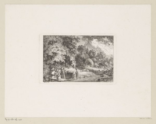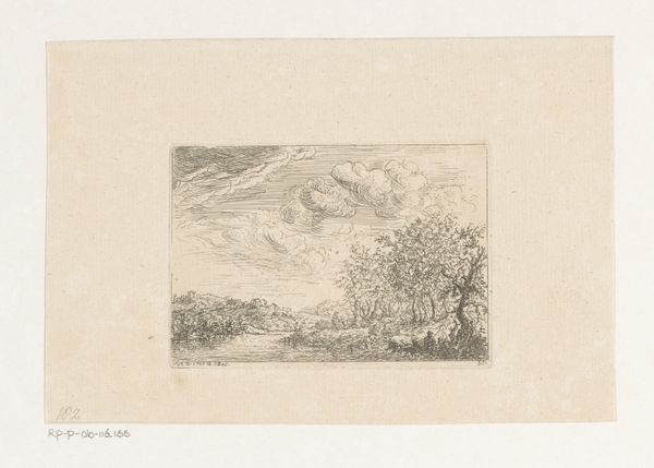 This is Christian Ludwig von Hagedorn’s "River Landscape with House on the Shore," an etching. The printmaking process requires working with a metal plate, likely copper in this case, carefully coating it with a waxy, acid-resistant ground, then drawing an image through the ground with a pointed tool, exposing the metal. The plate is then submerged in acid, which bites into the exposed lines, creating grooves. The deeper the bite, the more ink it will hold. Once the ground is removed, the plate is inked, wiped clean, and pressed against a sheet of paper, transferring the ink from the etched lines. Here, Hagedorn’s marks are delicate, yet the scene feels robust. The etching process is well-suited to capturing the textures of nature: the thatched roof, foliage, and rippling water. The labor-intensive printmaking process, requiring skill and precision, stands in contrast to the humble, everyday scene depicted. It asks us to consider the value of both labor and leisure in the 18th century. By taking something seemingly ordinary, and immortalizing it through this print, Hagedorn reminds us of the special relationship between art, craft, and the world around us.