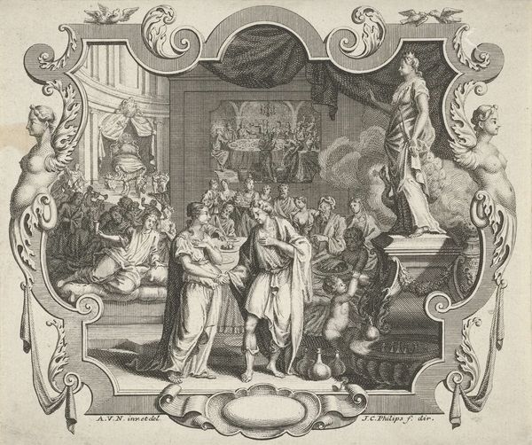 This is Pieter Serwouters' engraving, "Allegorische voorstelling met de Hoop, het Geloof en de Liefde," made in the Netherlands. We see an artist in his studio, caught between earthly and divine love. On the left, Venus, goddess of love, accompanied by Cupid, exits. The artist seems to be turning away from his prior devotion to beauty and sensual pleasure, represented by the nude Venus, in favor of a life dedicated to Christian virtue. On the right stand the allegorical figures of Hope, Faith, and Love, who guide the artist towards spiritual enlightenment. The artist kneels, his hands clasped in prayer, as these virtues prepare to offer a sacrifice of gratitude, symbolizing his repentance. This shift reflects the cultural and religious tensions of the time, where personal piety and the embrace of Christian virtues were increasingly valued over worldly pursuits. The scene invites us to consider how we negotiate the complex interplay between faith, desire, and artistic creation in our own lives.