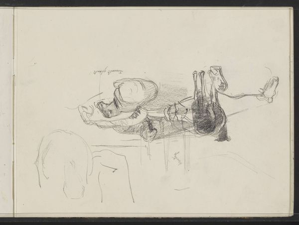 Curator: Here in gallery 214 at the Rijksmuseum, we have a pencil drawing on paper by Johannes Bosboom, dating from 1827 to 1891, titled "Monnik met een baard"—or "Monk with a Beard." Editor: There's a quiet solemnity in this sketch, even in its unfinished state. The light and shadow give a gravity to his downcast expression. You get the feeling this monk carries the weight of the world on his shoulders. Curator: That's interesting, because what stands out to me is the vulnerability and fragility it evokes. We see Bosboom grappling with form, testing the contours of the figure and habit, which in itself lends to a powerful humanization of the sitter. Think of the monastic life during this time and its discontents—Bosboom offers us a window to inner turmoil. Editor: And perhaps it suggests wider struggles within religious institutions of the era? The realism lends a stark quality. There's no romanticism, no idealized view of the church. Bosboom gives us a candid glimpse of faith's human face. What I also see is class disparity between powerful monastic orders of the 18th and 19th centuries and the everyday reality for much of the European lower class. Curator: It is indeed a far cry from earlier glorifications of monastic figures in Renaissance art, for example. I wonder, do you think the sparse lines add to this sense of reality? Bosboom chooses pencil, not oil paint or even elaborate inkwork. It strips away any possibility for pomp. The stark, raw lines invite a dialogue of personal reflection that historical depictions often mask. Editor: Absolutely. The sketch feels like a whisper, an intimate glimpse into a private moment of contemplation. It lacks the formal rhetoric you might expect, emphasizing the human subject beyond the trappings of his religious identity, revealing him to the same kinds of struggles that everyone goes through regardless of his vows. Curator: It brings us closer, doesn't it? To his very real existence beyond representation. It reminds us to look beyond what's immediately visible. Editor: A powerful call to empathy, delivered with astonishing lightness and honesty. It's that contrast, perhaps, which makes it so compelling.