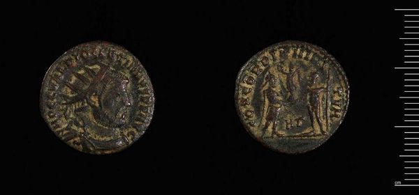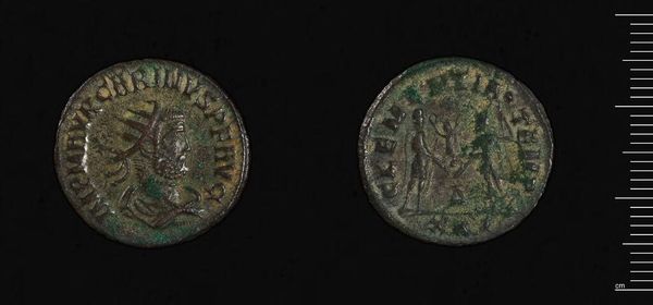 Curator: Here we have a coin of Antiocheia Caesarea under Gordian III. Editor: It appears rather worn, a testament to its age and the handling it must have endured. I can almost feel the weight and coolness of the metal in my palm. Curator: The obverse presents a profile portrait of Gordian III, encircled by text. The composition is quite formal, as one might expect from imperial coinage. Editor: And on the reverse, we see figures. It makes me think about the labor involved in the coin's production, from the mining of the metals to the striking of each individual piece. Curator: Indeed. Each coin was a piece of propaganda, shaped by the social and political currents of the time. Editor: It's interesting how an object so small could carry so much weight. Curator: In terms of power, certainly. Editor: I will have to reflect more on the weight of history that this piece holds.
