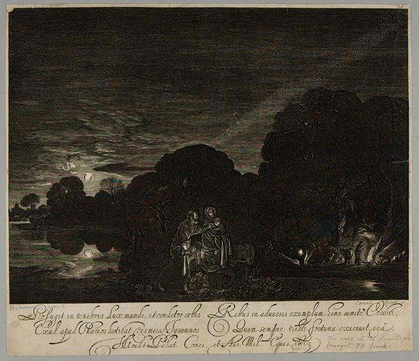 Hendrick Goudt created this print, "The Flight into Egypt," in the 17th century using etching and engraving techniques. The scene depicts Mary, Joseph, and the infant Jesus fleeing to Egypt to escape King Herod's infanticide. The artwork’s cultural context is rooted in the religious and political turmoil of the Dutch Golden Age. The use of chiaroscuro creates a dramatic, emotional impact, consistent with the Baroque style popular at the time. Consider how the imagery highlights the vulnerability of the Holy Family, resonating with the anxieties of a society marked by religious persecution and war. The choice to depict a biblical scene through a contemporary artistic lens reflects the period's complex relationship with religious tradition. Analyzing Goudt's sources and the patronage system can further contextualize this work. Understanding the iconographic traditions and the social function of art in the Netherlands at the time is essential. By consulting historical documents and scholarly interpretations, we can appreciate how the artist engaged with and challenged the social norms of his time.