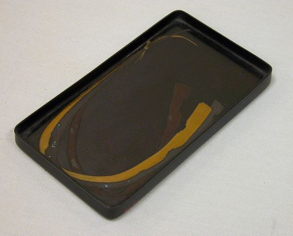 Curator: Here we have a 19th-century wooden box with carving by Shibata Zeshin. Editor: Oh, the contrast is striking. That deep, lustrous black against the almost iridescent red of the crab… It’s like a small treasure chest holding potent symbolism. Curator: Zeshin was incredibly skilled in applying lacquer techniques in unconventional ways, almost blurring the lines between painting and sculpture. Consider the laborious process involved: the preparation of the wood, the layering of the lacquer, the carving. Editor: And the crab! It dominates the visual field. In Japanese iconography, the crab is a symbol of tenacity and strength, but it also carries connotations of protection and good fortune. Curator: It also could be interpreted as symbolizing transformation because crabs are creatures that molt, shedding their shells. I am especially struck by the fact that the bottom corner of the box seems to feature the lower half of another crab. Is it emerging from the sea? Editor: I think there's definitely an aspect of the sea or hidden depths to it. Perhaps this layering reflects a belief in unseen potential? I’m also compelled to remember, it’s also just a box—likely used for everyday personal items, blurring art with the functional. Curator: Exactly. What does it tell us about consumption, labor and daily lives within 19th-century Japan? Zeshin's craft elevates functional object. Editor: Precisely! In its own way, the crab acts as a kind of guardian spirit. This unassuming, yet intricately worked box holds layer upon layer of cultural meaning, and hints at what was important at that moment. Curator: A powerful reminder that objects often have greater importance through what they reflect about daily lives. Editor: A potent little box, indeed.